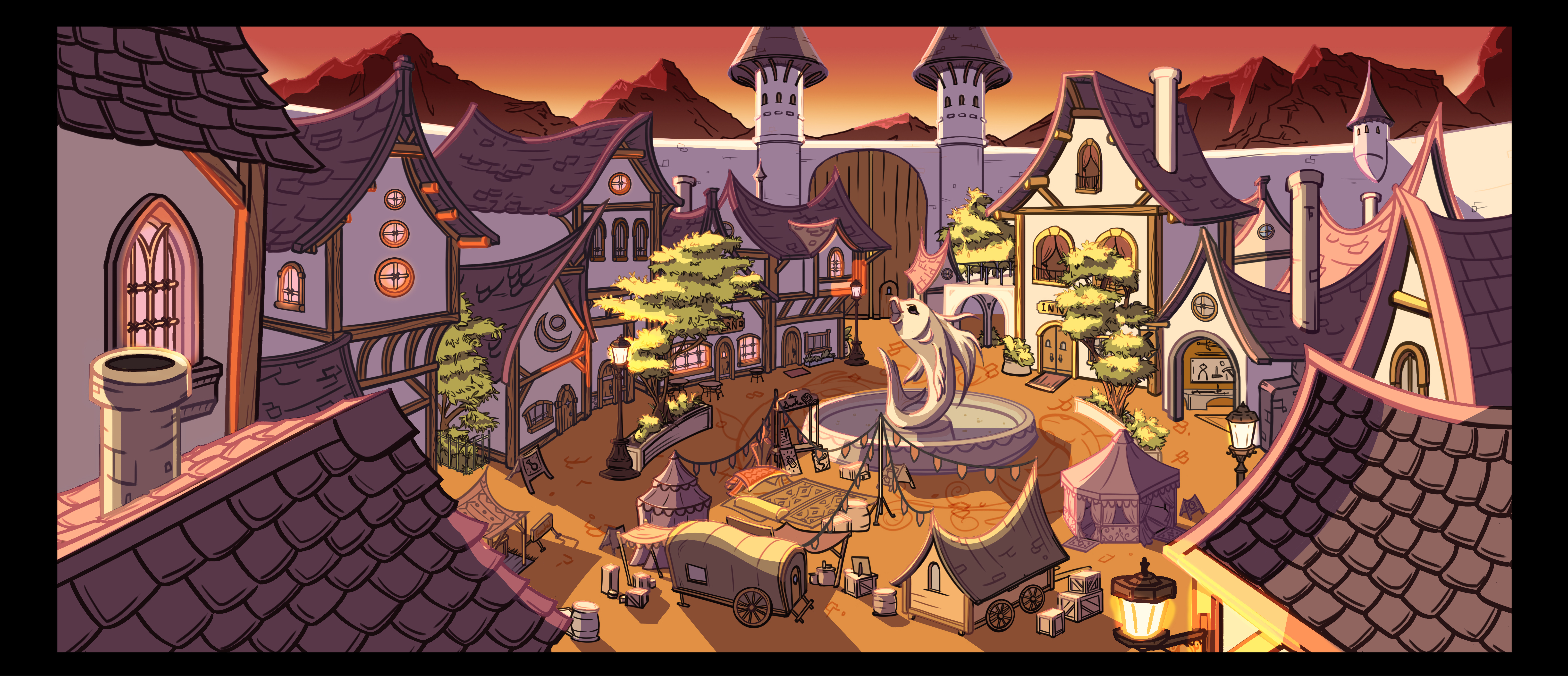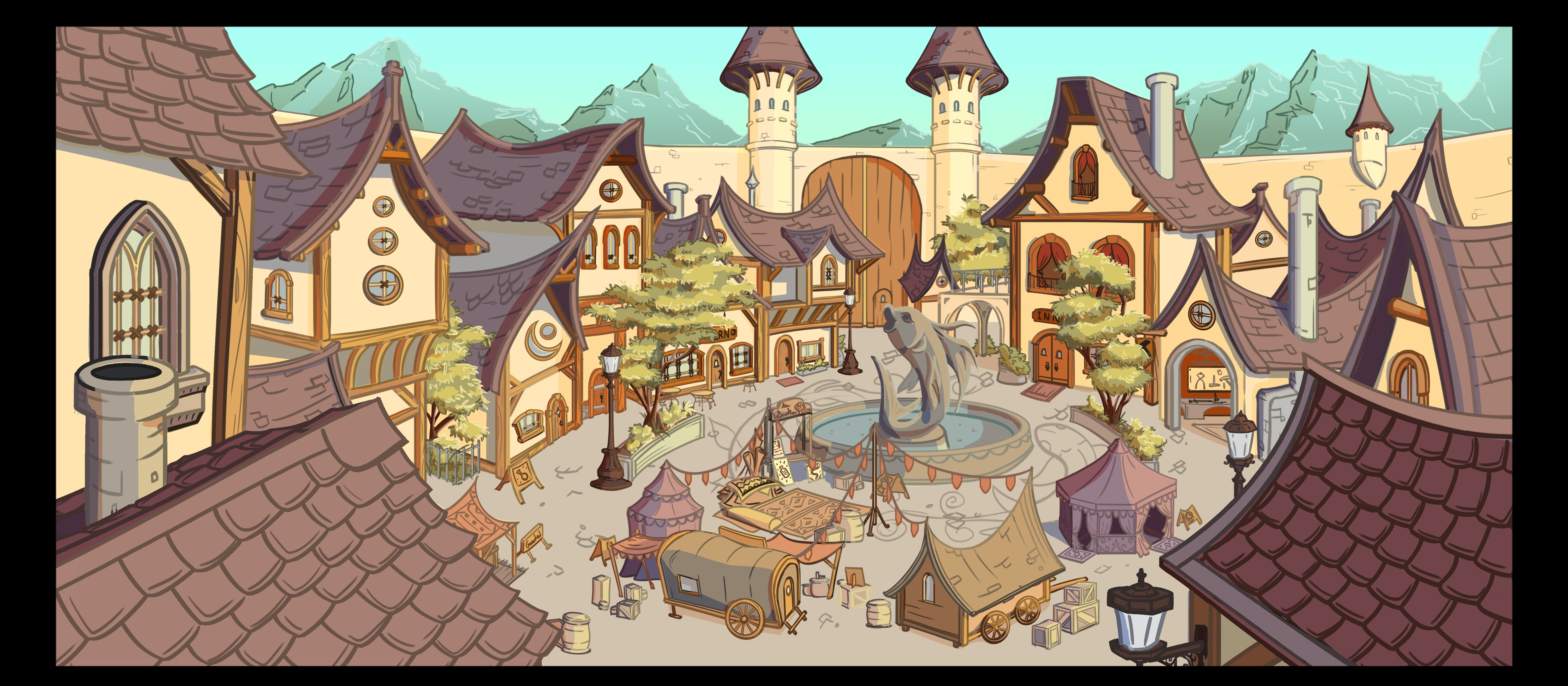 Location design for the Medieval Town — home of the Potion Shoppe!